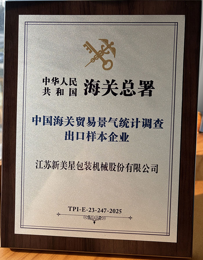 近日,新美星被海關(guān)總署授予“中國海關(guān)貿(mào)易景氣統(tǒng)計調(diào)查出口樣本企業(yè)”稱號。中國海關(guān)貿(mào)易景氣調(diào)查是經(jīng)國家統(tǒng)計局批準(zhǔn)的法定統(tǒng)計調(diào)查項目,覆蓋全國優(yōu)質(zhì)外貿(mào)企業(yè),通過每月采集訂單波動、經(jīng)營狀況、物流成本、市場預(yù)期等核心數(shù)據(jù),編制貿(mào)易景氣指數(shù),為國家外貿(mào)政策制定提供關(guān)鍵參考。新美星作為一家深耕液態(tài)智能包裝領(lǐng)域的企業(yè),有幸入選“中國海關(guān)貿(mào)易景氣調(diào)查出口樣本企業(yè)”,標(biāo)志著新美星的行業(yè)地位與經(jīng)營規(guī)范性。