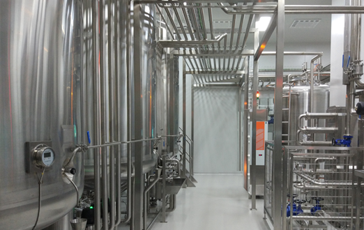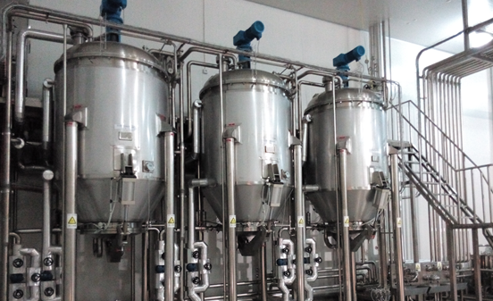 調(diào)配系統(tǒng)是指將各類原、輔料及工藝水通過各種工序單元按預(yù)訂工藝參數(shù)進(jìn)行提取或溶解,然后混合調(diào)配定容后獲得半成品的設(shè)備組合;主要模塊包括為熱水單元、溶糖過濾殺菌單元、果汁/茶粉還原溶解單元、輔料溶解單元、茶葉萃取過濾單元、奶粉還原混合單元、調(diào)配定容單元、CIP清洗單元、管路單元、電氣控制及中控單元等。