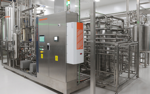 調(diào)配后的物料在灌裝之前需要進行滅菌,熱法滅菌是最常見的工藝。根據(jù)不同產(chǎn)品特性 、后續(xù)匹配的灌裝工藝及貨架期的不同,可選擇超高溫瞬時滅菌(UHT),通常是加熱到130℃以上保持數(shù)秒。 換熱器的形式有板片式、列管式、波紋管式等。對于含帶果肉顆?;蚋哒扯鹊漠a(chǎn)品,必須使用管式換熱器,以防堵塞。同時管式換熱器的承壓能力也更強。 對于濁汁飲料或含乳的果汁飲料,我們推薦管式UHT;對于清汁飲料,可采用板式UHT。
